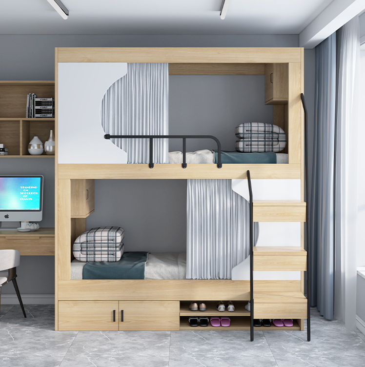 節(jié)省空間 特別適合空間有限的房間,如學(xué)生宿舍、小型出租房等。上下床將睡眠空間向垂直方向拓展,能在較小的面積內(nèi)容納更多人休息,有效提高空間利用率。 增加趣味性 對于兒童房來說,上下床可以為孩子營造出類似 城堡 或 樹屋 的感覺,增加生活的趣味性和新鮮感,激發(fā)孩子的想象力和探索欲,讓他們更享受自己的房間。 方便共享 在集體生活中,如宿舍或多人合住的環(huán)境,上下床方便人們共享居住空間,同時也有助于培養(yǎng)居住者的集體意識和社交能力,大家可以在有限的空間里共同生活、交流。